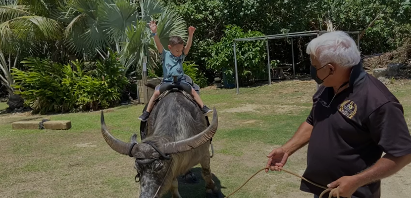 Carabao Riding - 享受穿越山谷的有趣方式。就像古人很久以前所做的那样,您可以在友好的 Carabao 的背上探索 Latte 冒险公园的山谷。