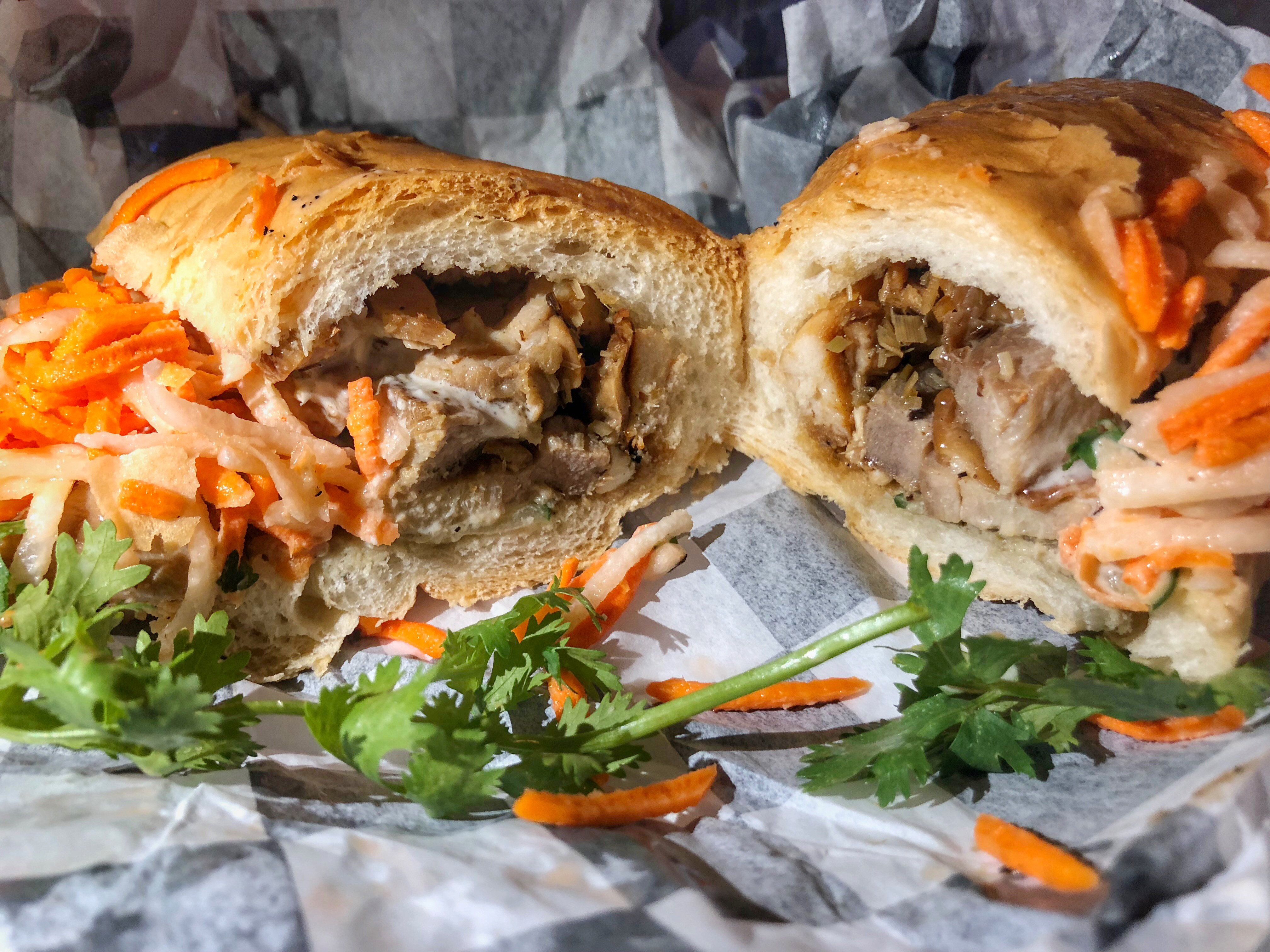 One of the humming mobile kitchens is simply named The Food Truck, but their food is anything but simple. This truck serves East-Meets-West cuisine with American fare: burgers and tacos with Guam and Vietnamese twists and flair. “Our Banh mi’s are our go-to but our burgers are catching up!” explains owner and operator Joey Atalig.