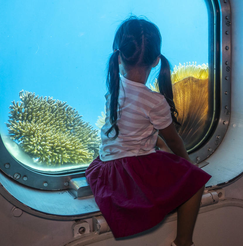 The Fish Eye Marine Park Underwater Observatory is the only facility of its kind in Micronesia. Experience the incredible diversity of the ocean through coral formations and observe stunning tropical fish passing by the underwater viewing windows. Witness the ocean's kaleidoscope of colors from the upper deck as it opens up to you in shades of emerald and blue.